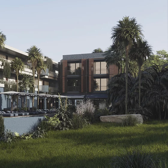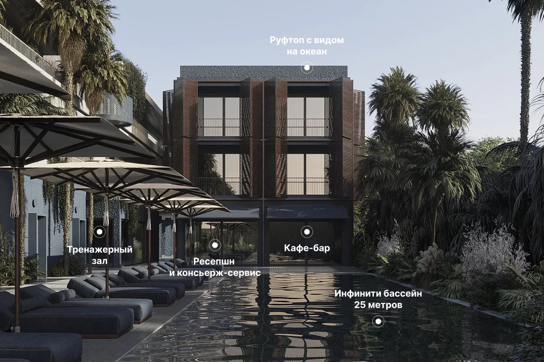 Современная архитектурная концепция с использованием премиальных материалов. Каждая деталь продумана для создания атмосферы курортного уюта и городского комфорта.