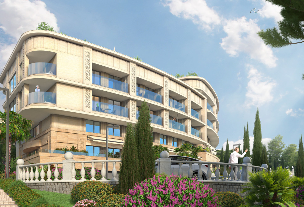 Комплекс выполнен в средиземноморском стиле с фасадами из натурального травертина. Каждый номер сдаётся резидентам под ключ: встроенная мебель в гостевых и спальных зонах, встроенная техника на кухне, стильная сантехника и продуманные световые сценарии в санузлах.