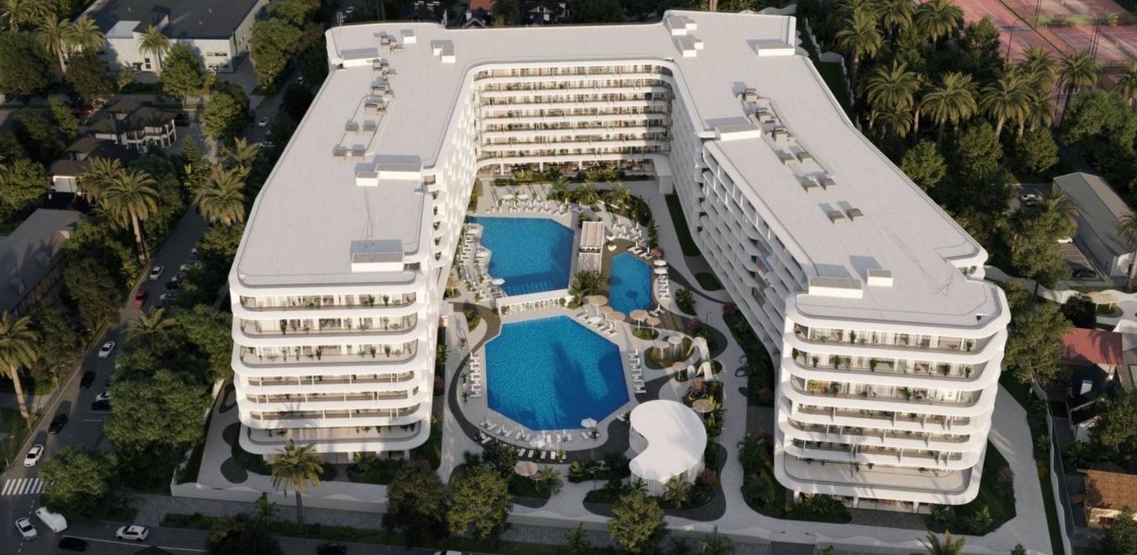 Гостиничный комплекс в Адлерском районе Сочи — современный объект на ул. Демократической, д. 18. Комплекс возводится специализированным застройщиком АО «СЗ «Солнечный луч» и рассчитан на премиальный уровень размещения. Общая площадь объекта — 100 360 кв.м.