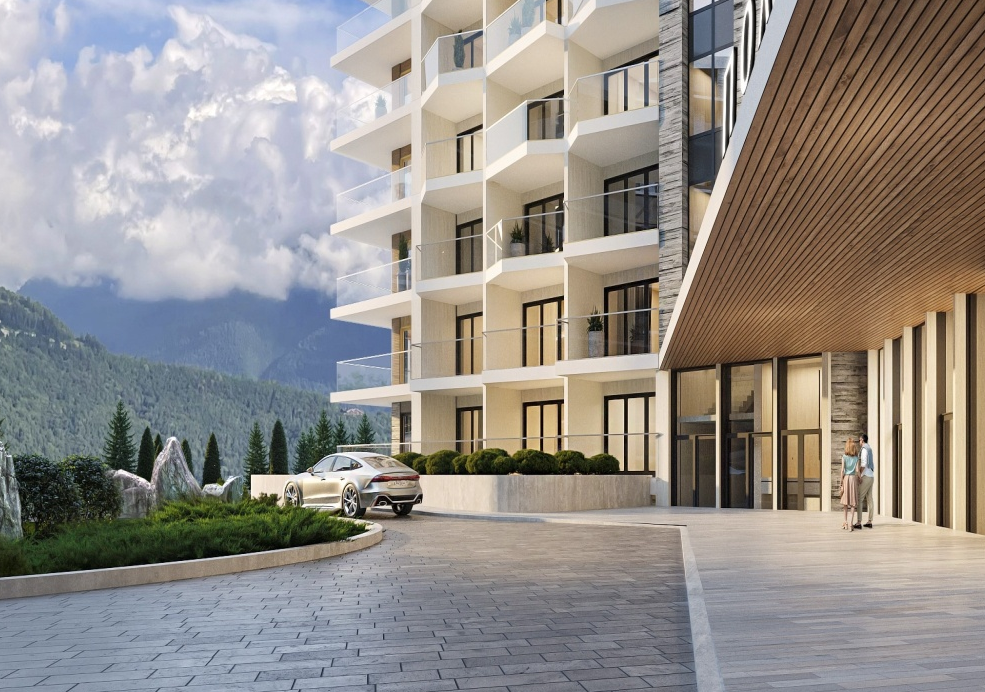 Поляна Пик — два современных здания высотой от 9 до 13 этажей в окружении горного ландшафта Красной Поляны. Архитектурная концепция разработана с учётом горного рельефа и органично вписывается в природную среду. Премиальный дизайн интерьеров, просторные планировки и панорамное остекление с видами на горы создают атмосферу альпийского курорта высокого класса.