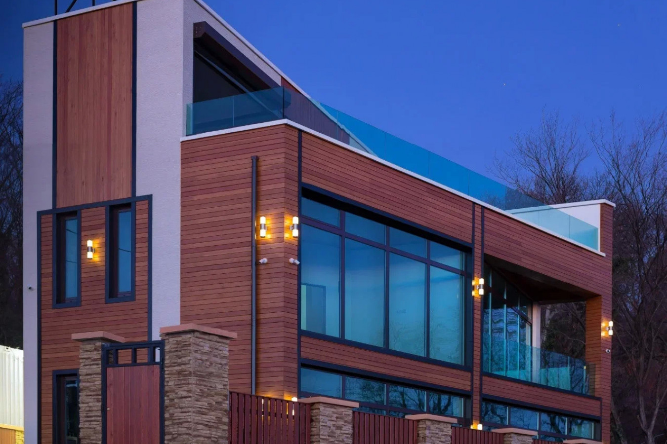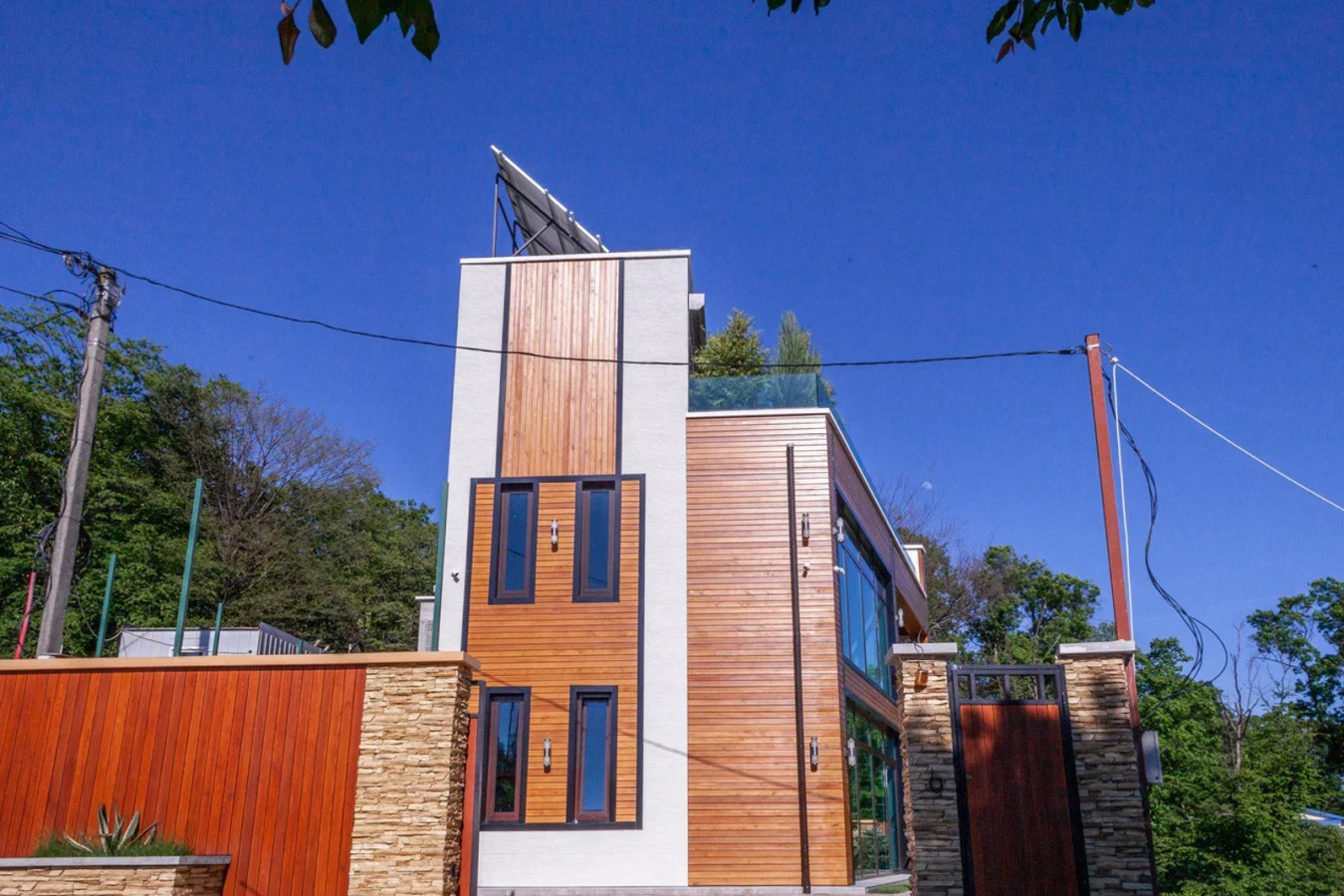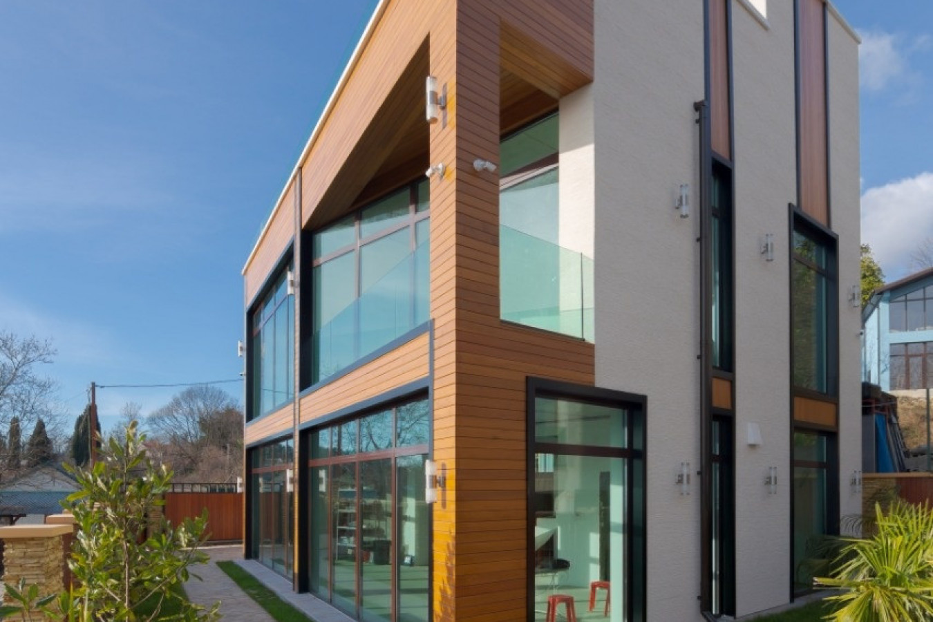 Новые коттеджи построены в стиле хайтэк, их ультрасовременные облики со стильными деревянными деталями отлично вписались в окружающий ландшафт. На участке выполнен ландшафтный дизайн, вечно-зеленые растения эффектно смотрятся на фоне натурального камня, которым вымощена придомовая территория....