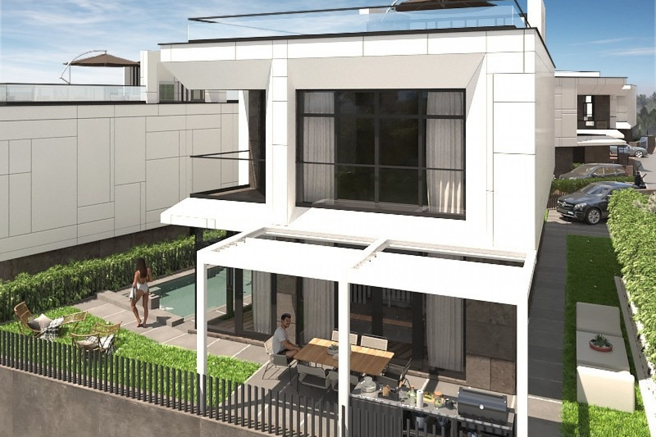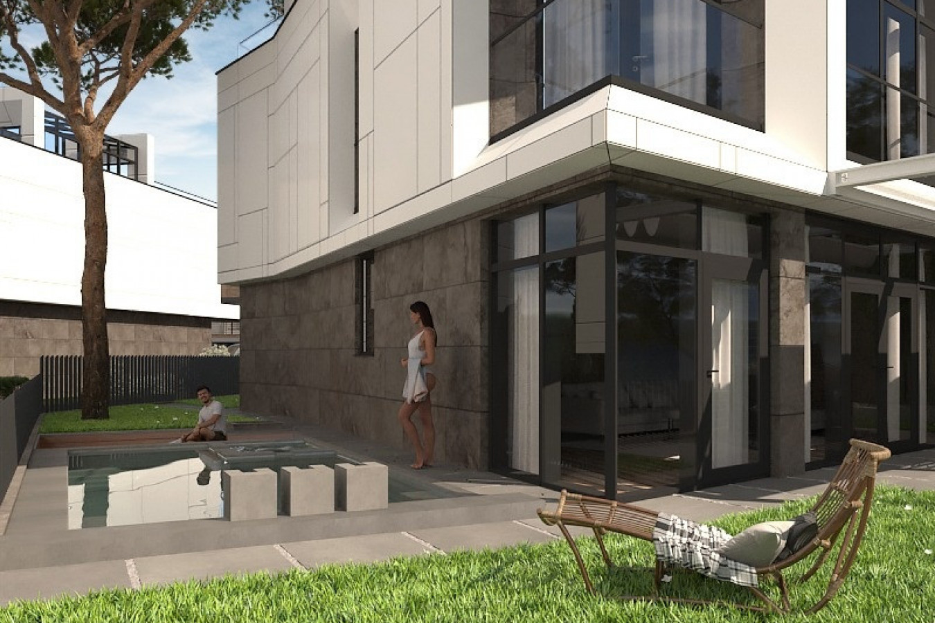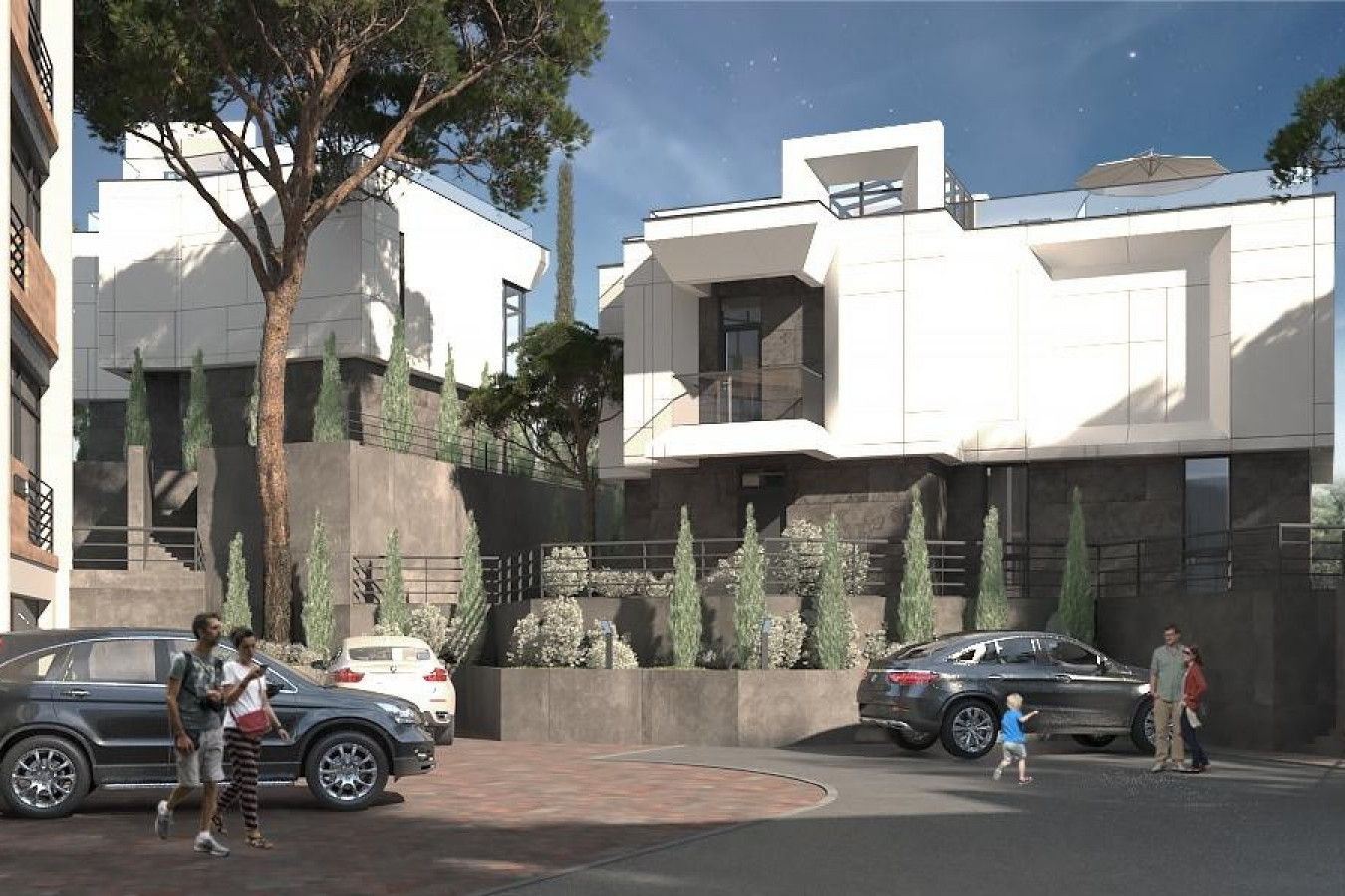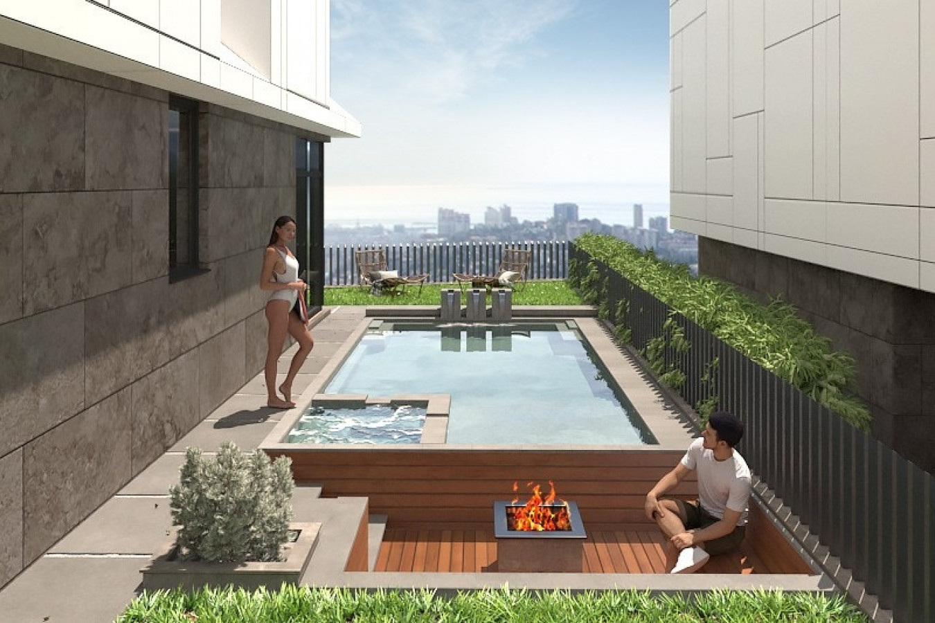 Современная архитектурная концепция с использованием премиальных материалов. Каждая деталь продумана для создания атмосферы курортного уюта и городского комфорта.