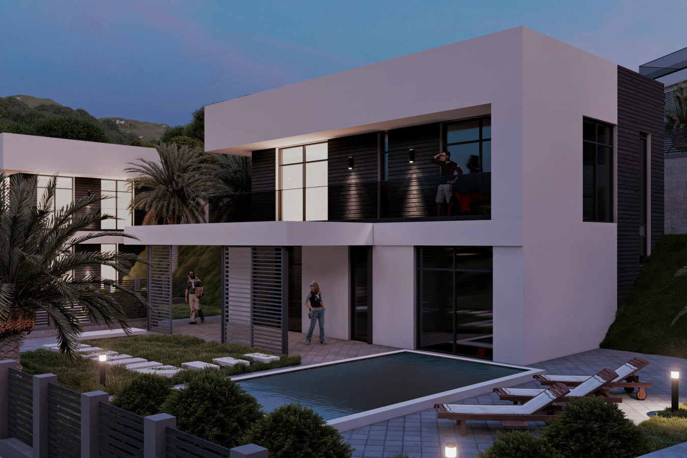 Современная архитектурная концепция с использованием премиальных материалов. Каждая деталь продумана для создания атмосферы курортного уюта и городского комфорта.