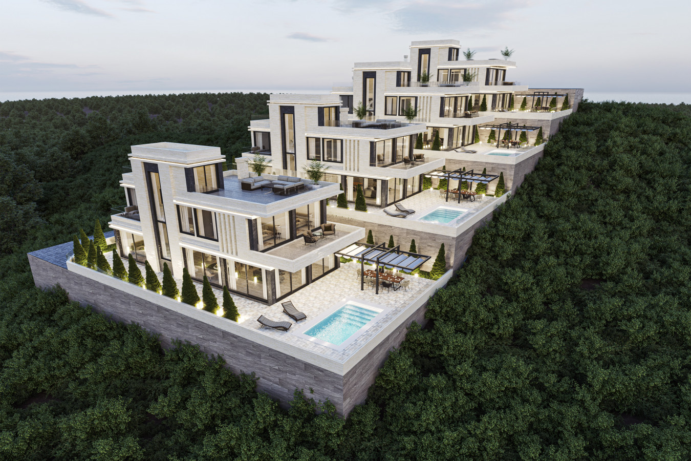 Современная архитектурная концепция с использованием премиальных материалов. Каждая деталь продумана для создания атмосферы курортного уюта и городского комфорта.