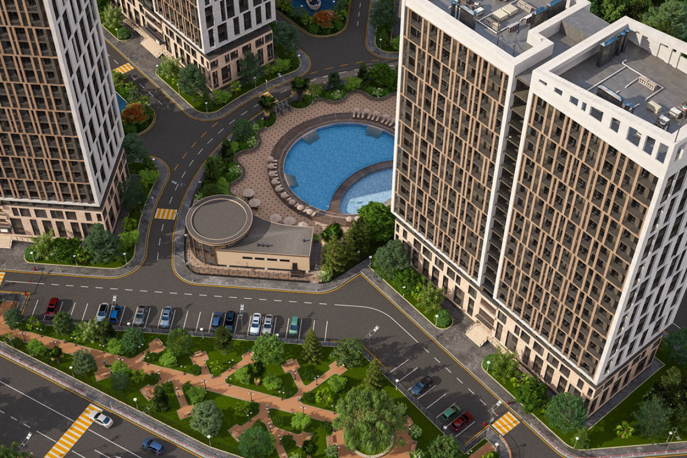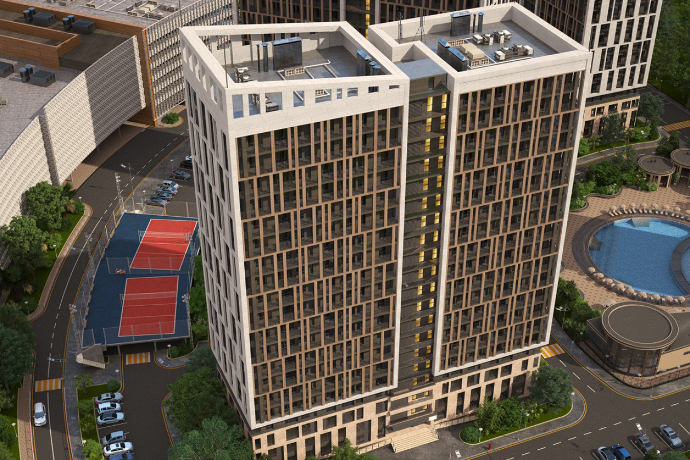 Современная архитектурная концепция с использованием премиальных материалов. Каждая деталь продумана для создания атмосферы курортного уюта и городского комфорта.