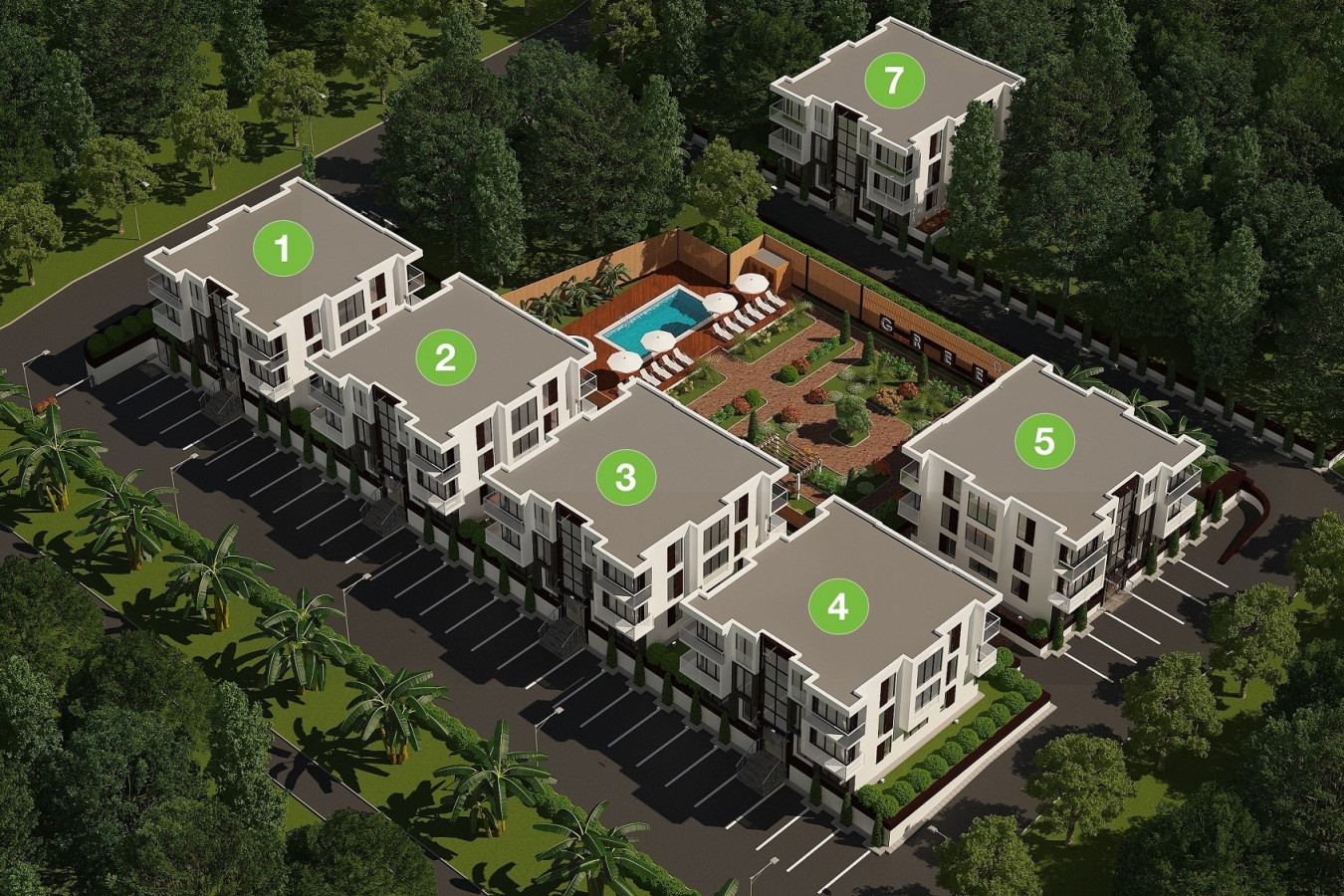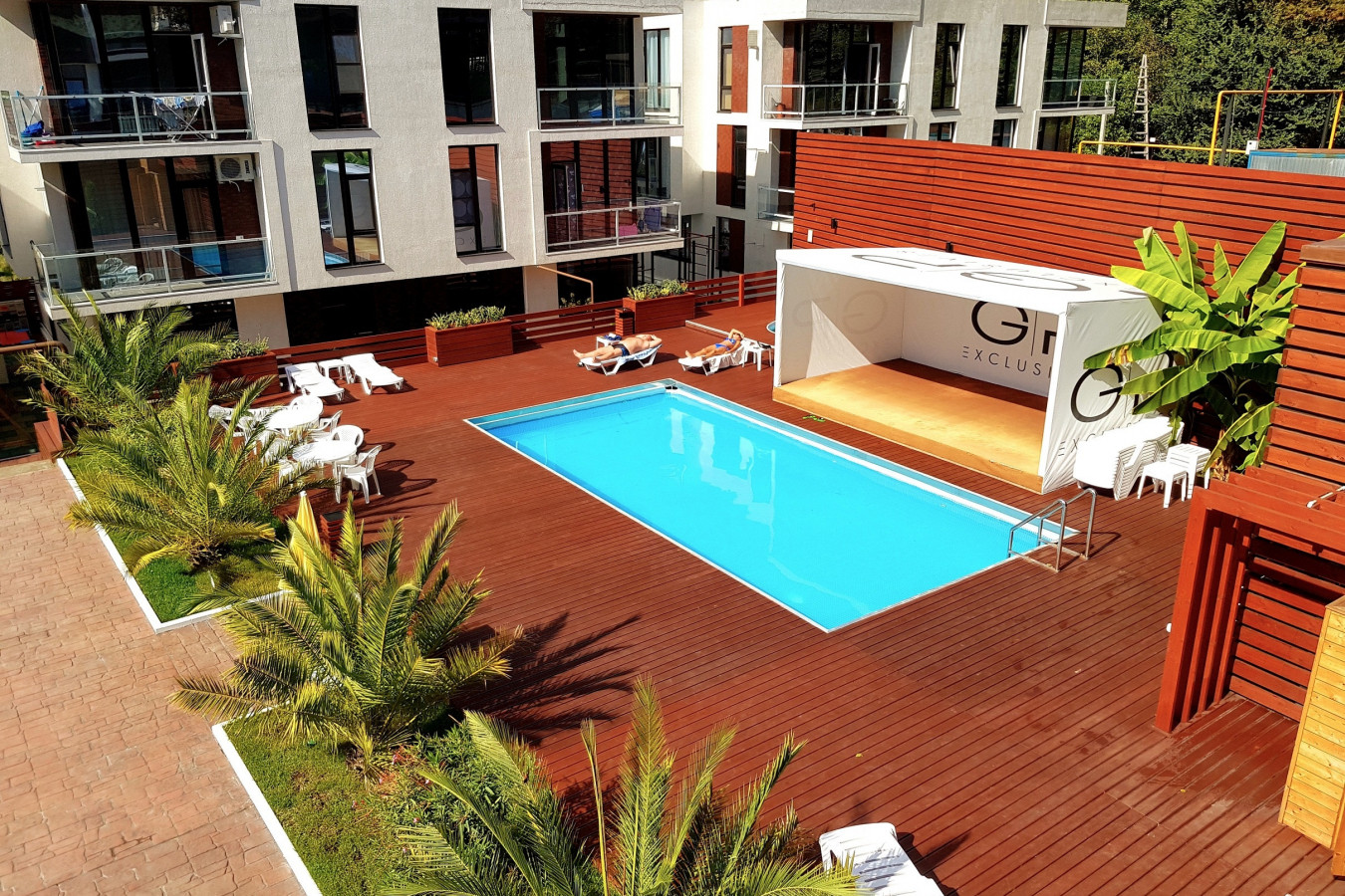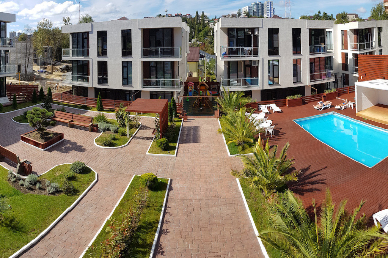 Современная архитектурная концепция с использованием премиальных материалов. Каждая деталь продумана для создания атмосферы курортного уюта и городского комфорта.