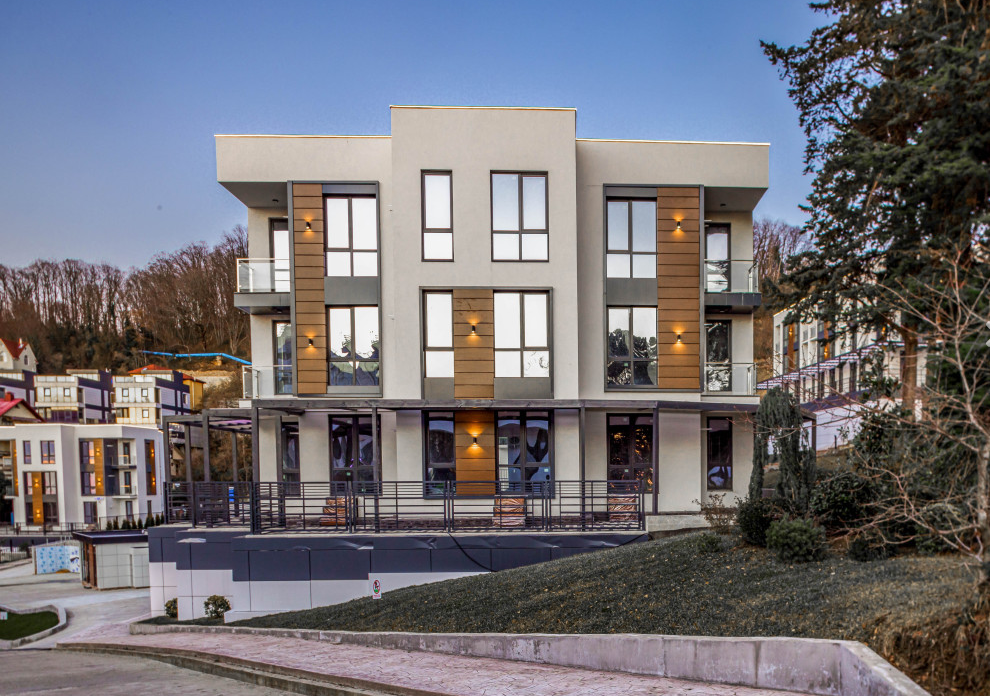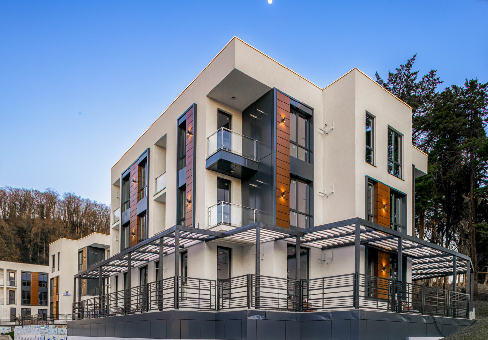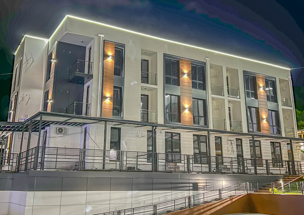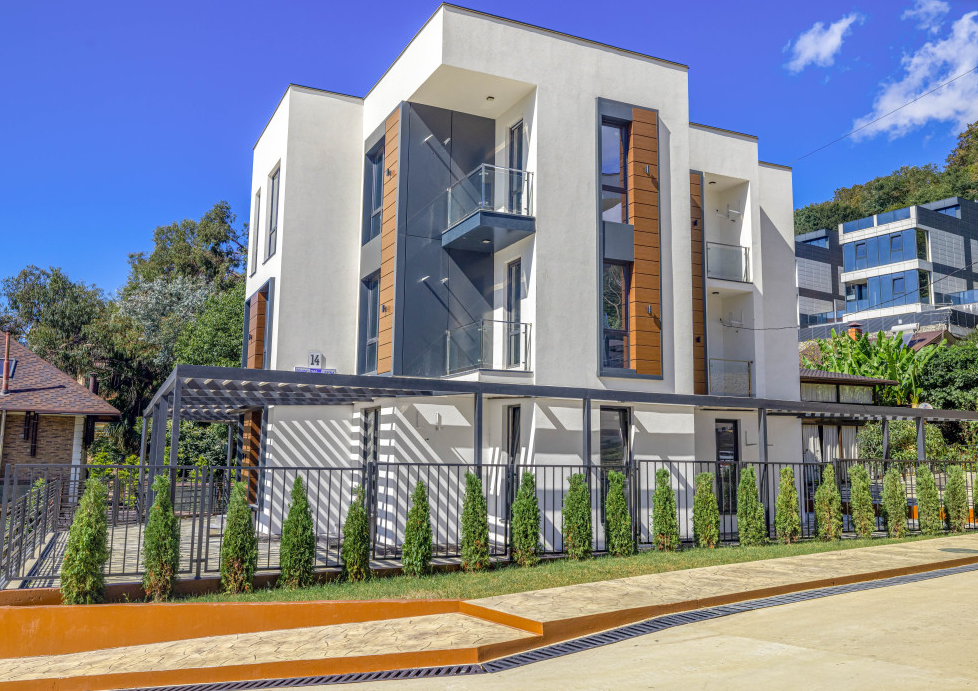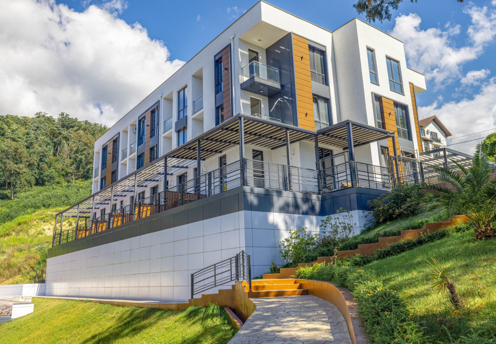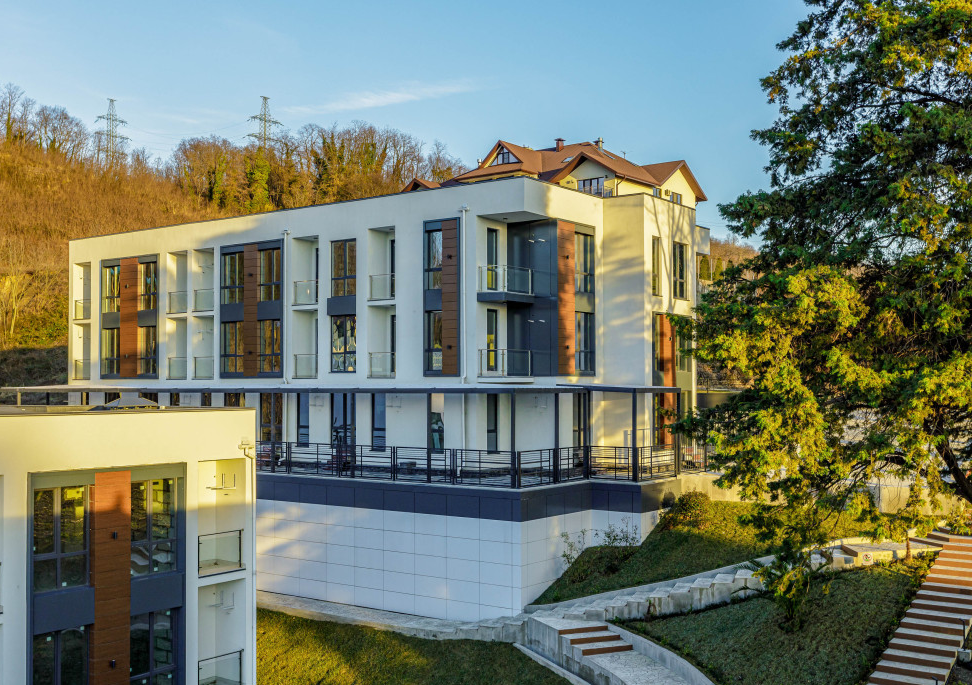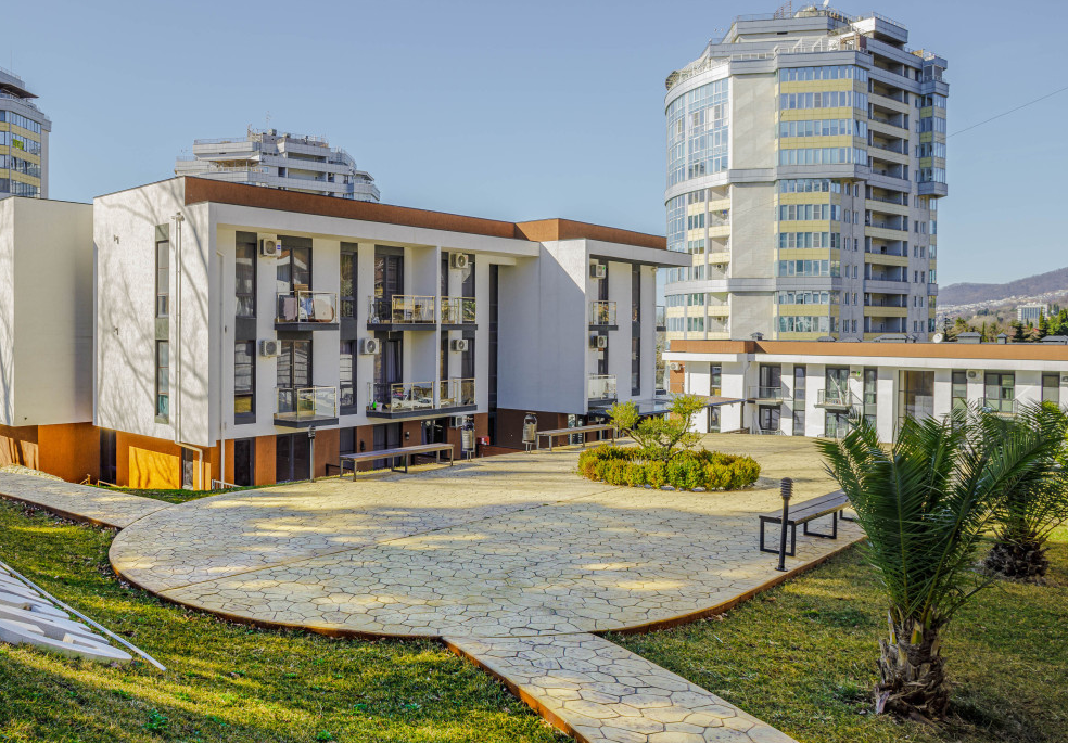 Современная архитектурная концепция с использованием премиальных материалов. Каждая деталь продумана для создания атмосферы курортного уюта и городского комфорта.