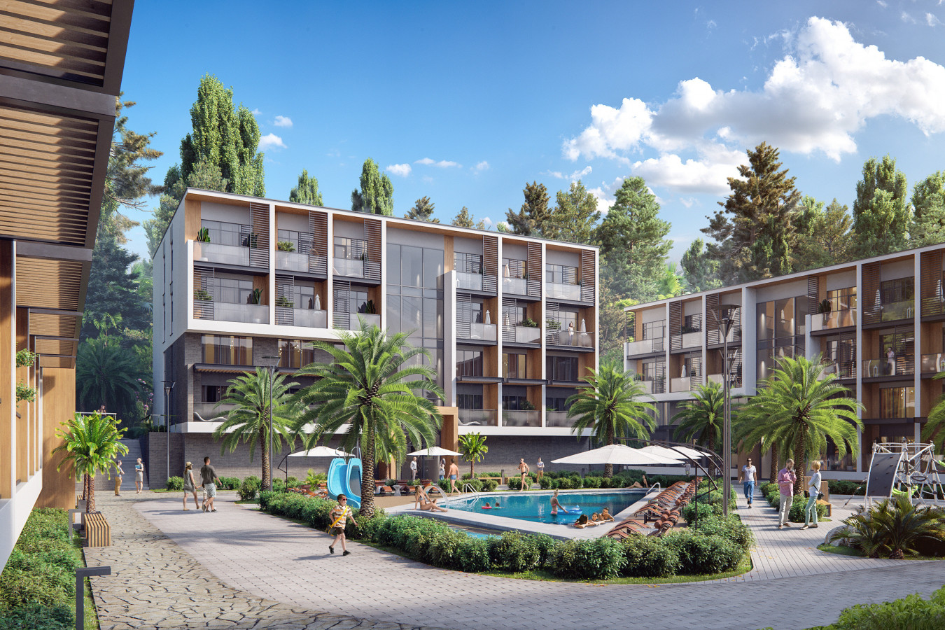 Современная архитектурная концепция с использованием премиальных материалов. Каждая деталь продумана для создания атмосферы курортного уюта и городского комфорта.
