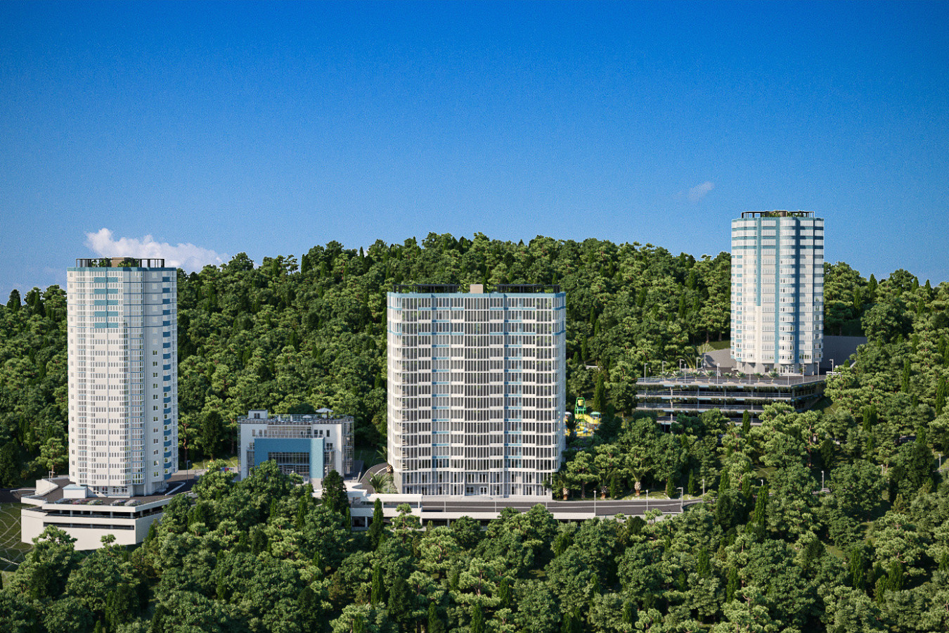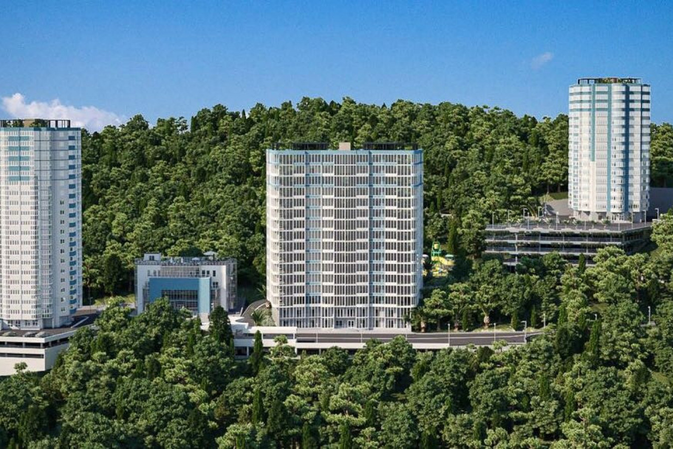 Современная архитектурная концепция с использованием премиальных материалов. Каждая деталь продумана для создания атмосферы курортного уюта и городского комфорта.