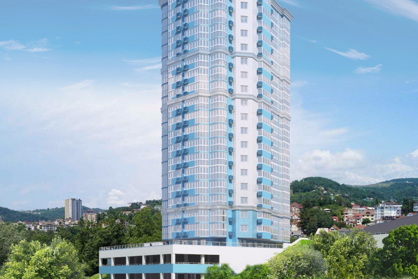В зданиях 16 и 18 этажей. Из окон c панорамным остеклением открывается потрясающий вид на море и горный ...