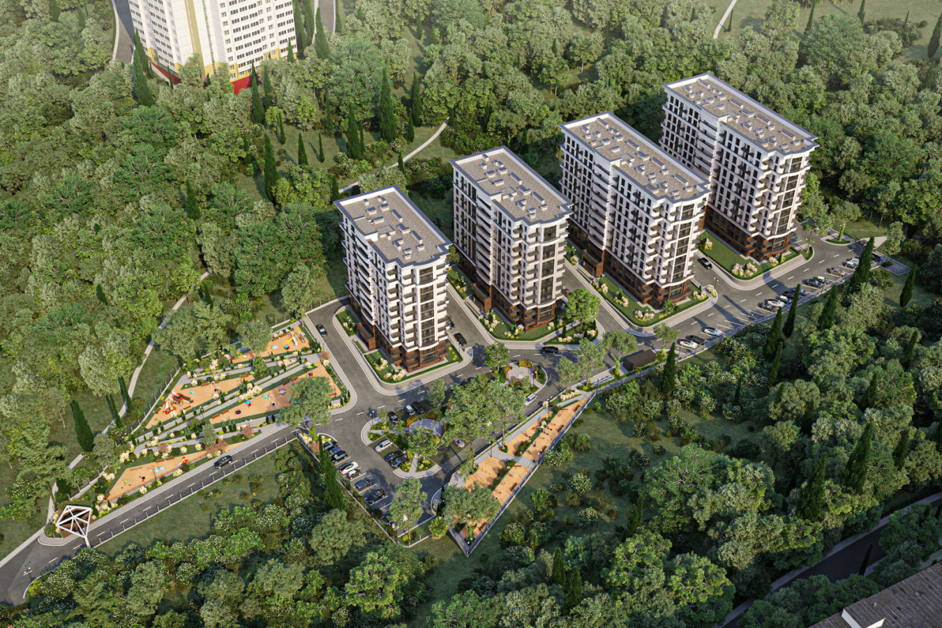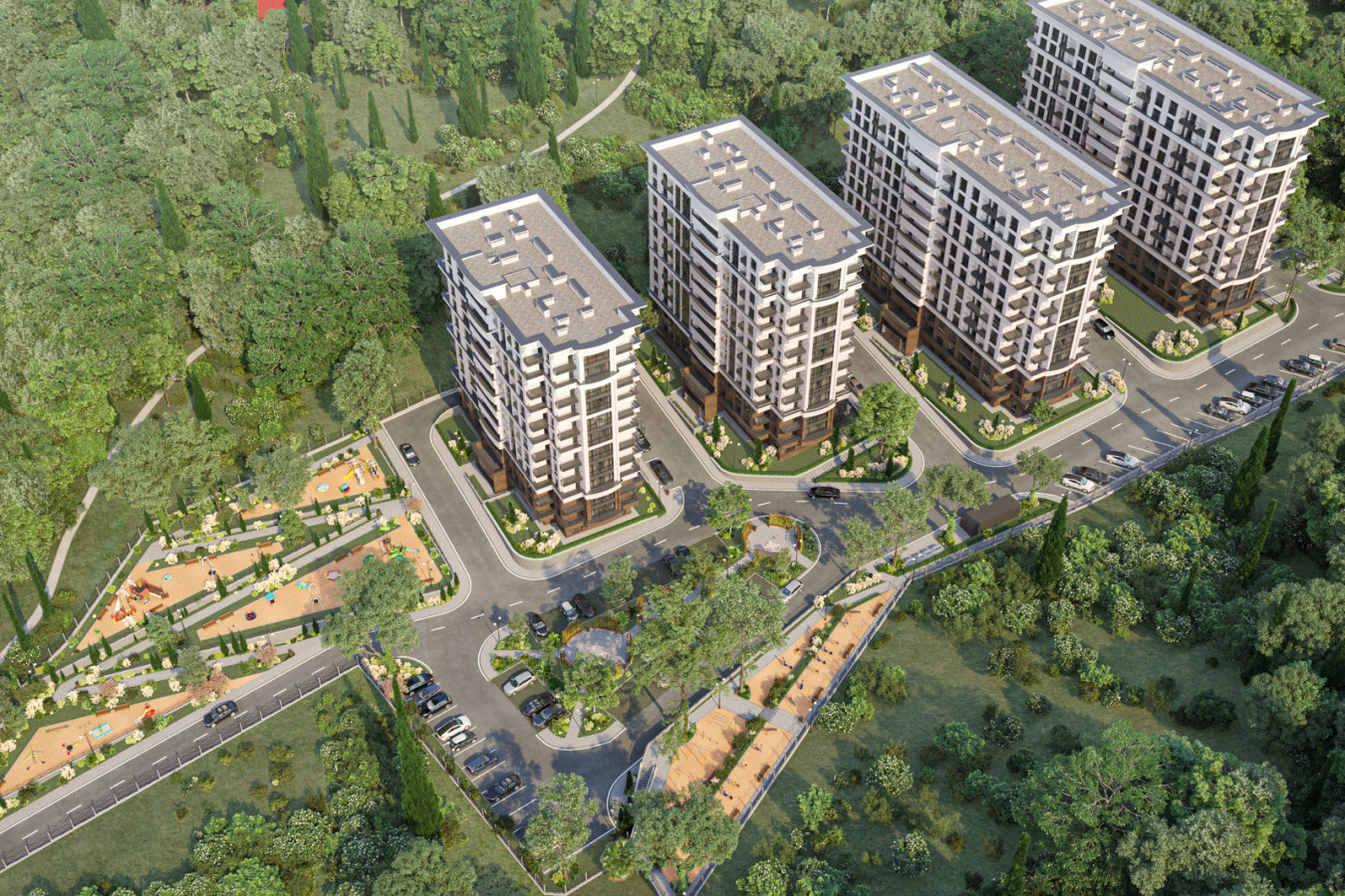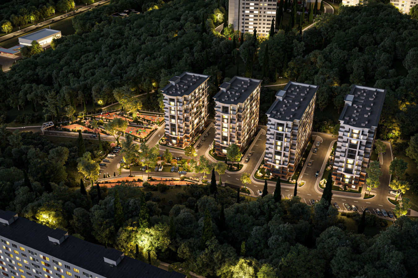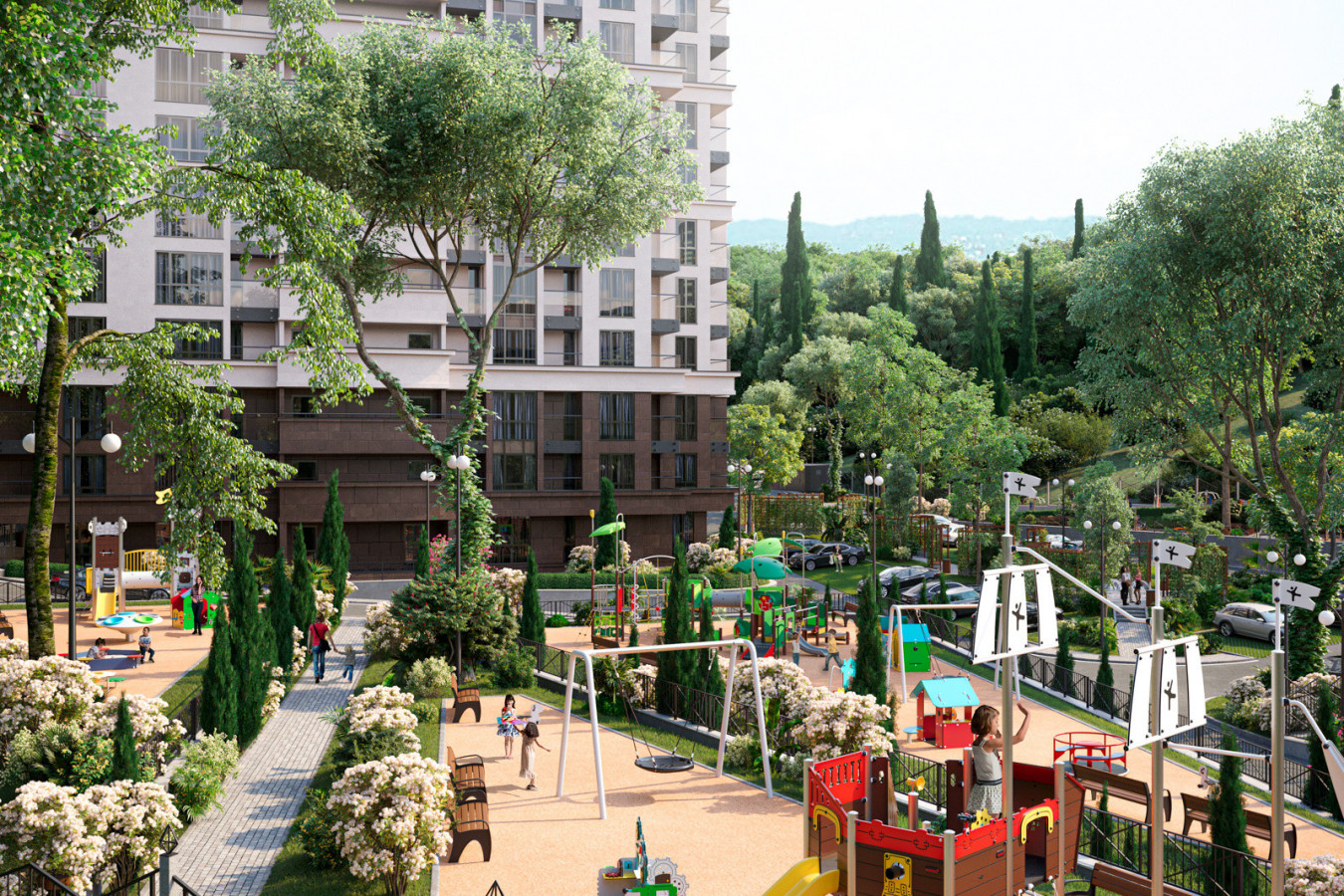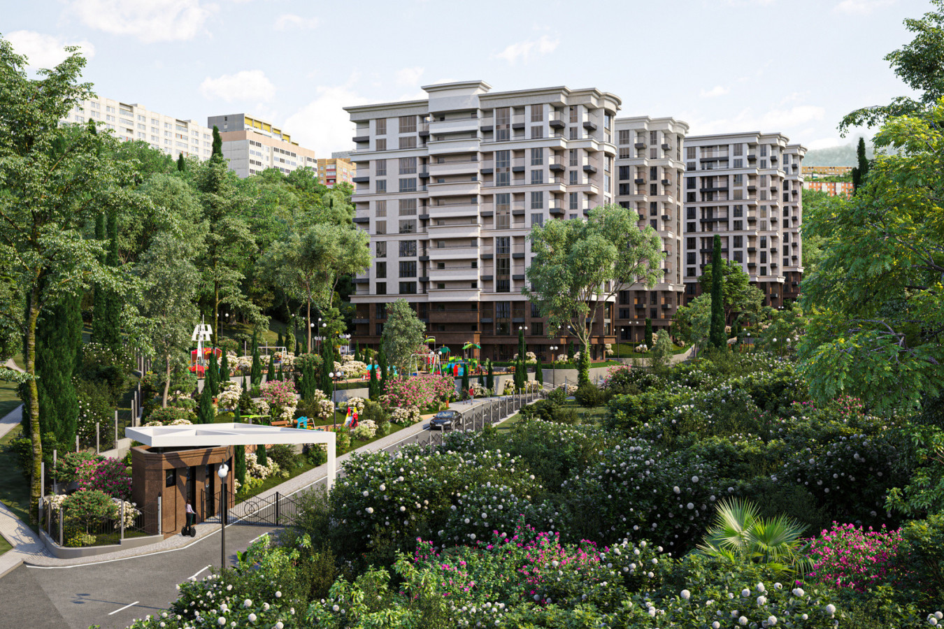Современная архитектурная концепция с использованием премиальных материалов. Каждая деталь продумана для создания атмосферы курортного уюта и городского комфорта.